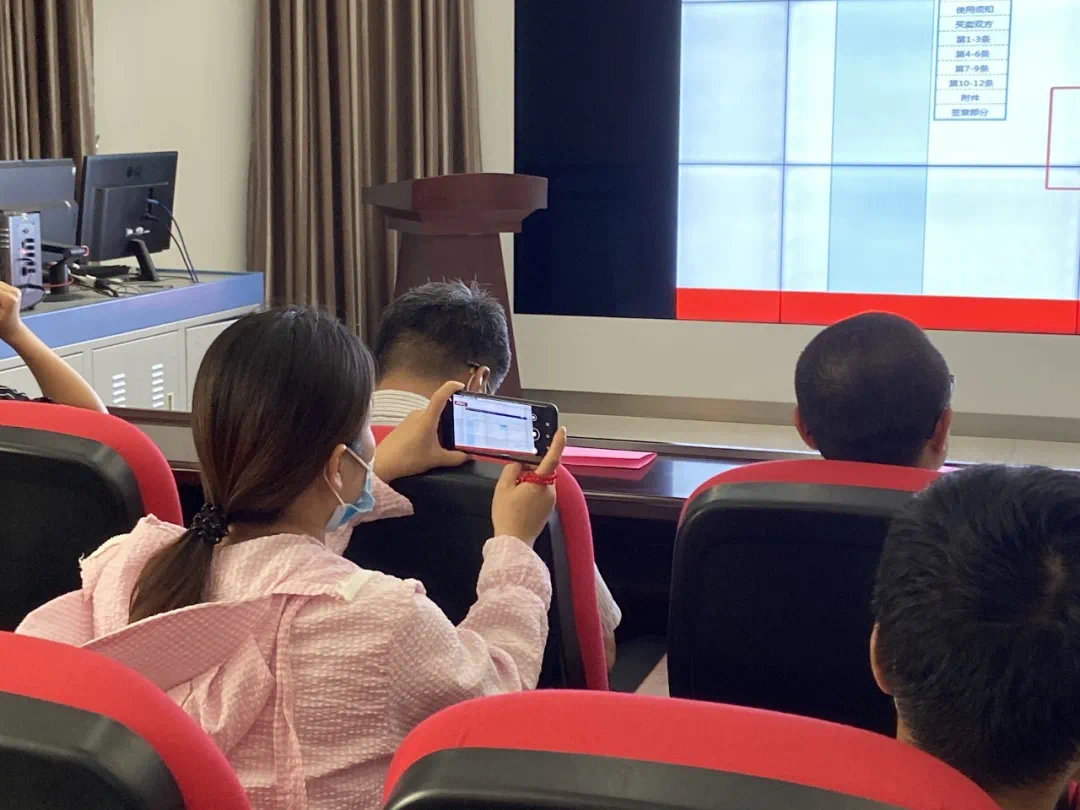 培训会现场气氛热烈,与会人员在学习过程中对课件进行拍照、录视频,捕捉每一个讲授的细节;在交流讨论环节,多家经纪机构踊跃发言,提出在当前工作中出现的问题和疑问,同行之间热烈讨论,存量房网签和交易资金监管科黄辉、前台窗口和技术人员查漏补缺,对可能出现的问题做补充说明。