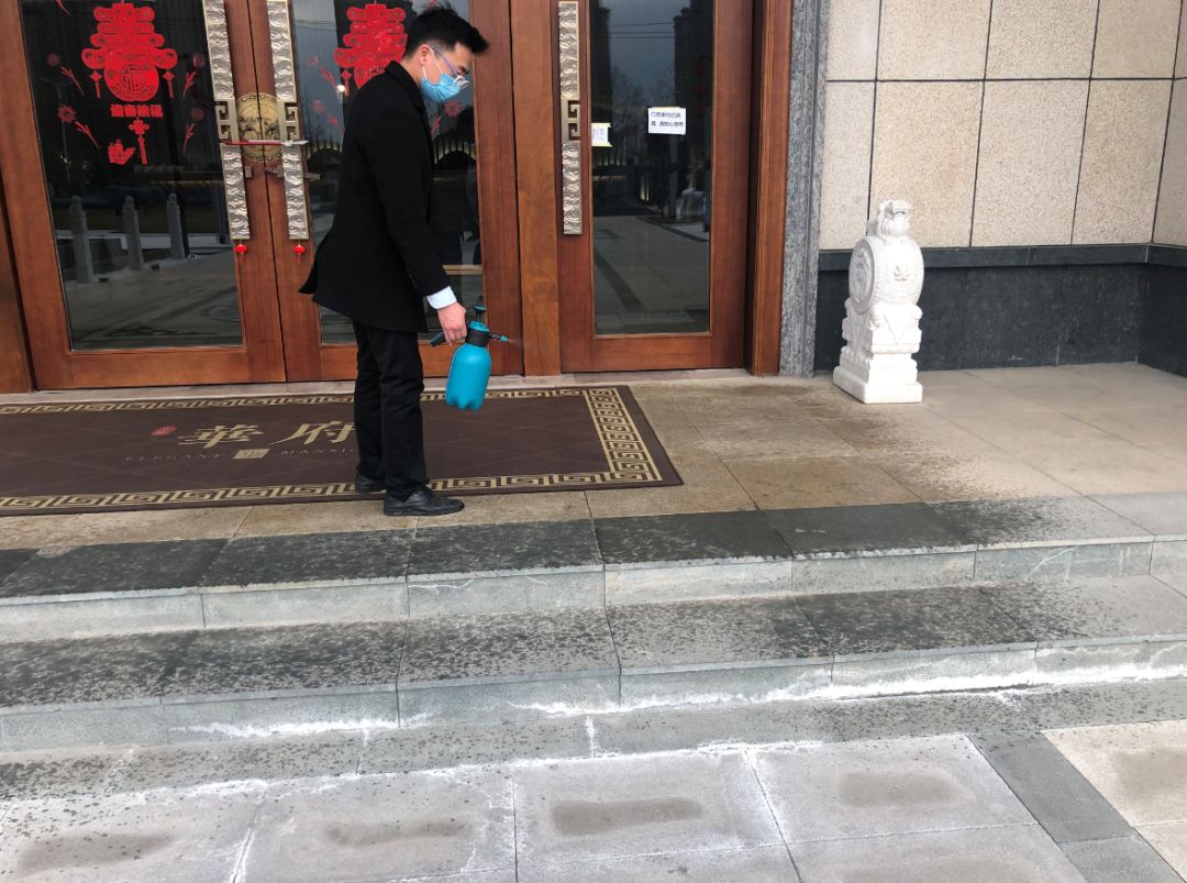 同时,物业公司也积极落实消毒工作细则,每日定时定人对公共区域进行消毒,特别对门把手、闸机等,高频接触的部位每日消毒5次以上,积极协调申领消毒药片、消毒液、喷壶、酒精免洗洗手液等。