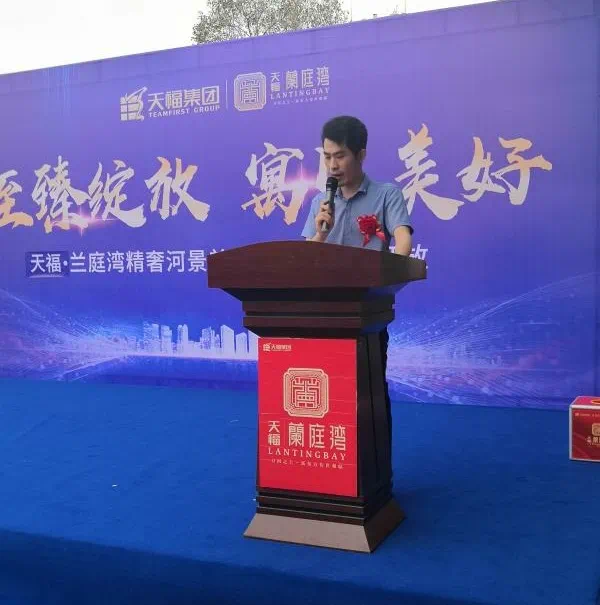 首先,福泽地产常务副总经理叶小归开场致辞,叶总为大家介绍了天福集团的发展历程及“美好生活+幸福营造者”的品牌定位,目前在全国14省同时操作81个楼盘的战略发展布局,以“盖老百姓买得起的好房子”为己任,深耕河南,布局全国。并表示天福·兰庭湾项目在继本次推售滨河美寓后,还会陆续推出商业配套业态,在完善项目配套的同时提升客户居住幸福感。