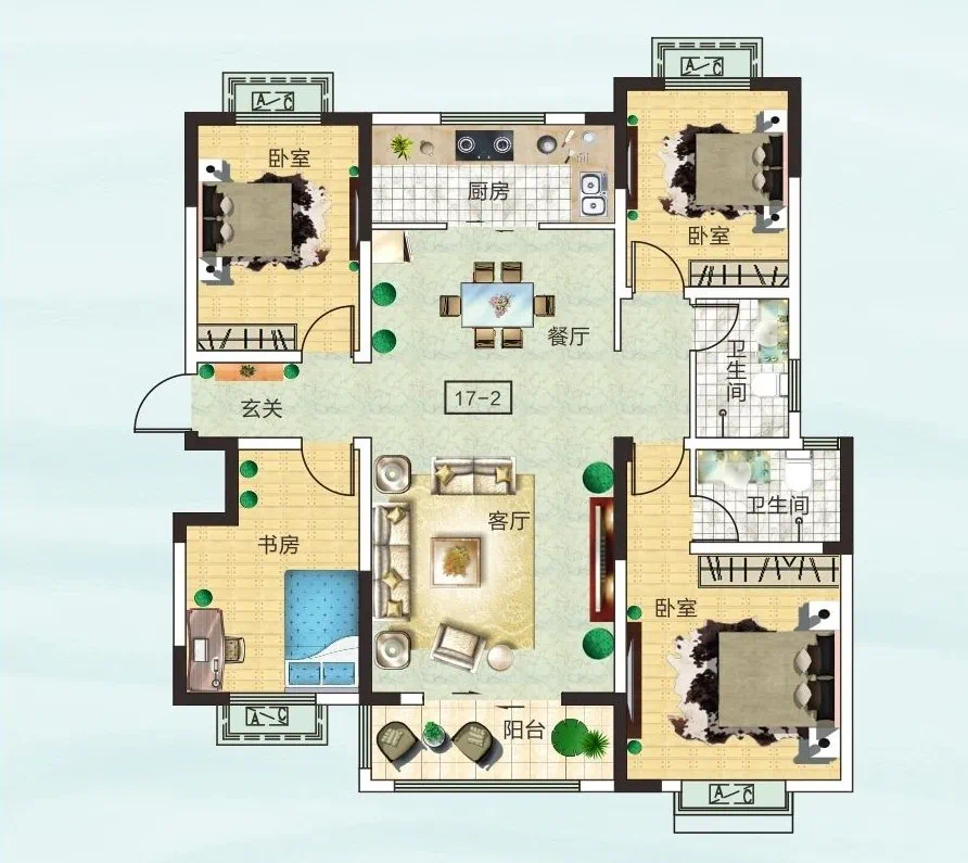 140㎡奢阔四房,央景楼王