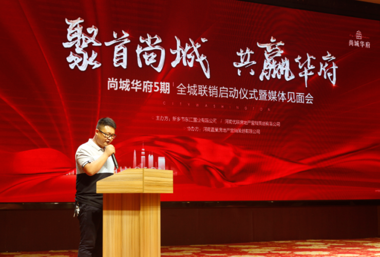 会上,来自新乡市东江置业有限公司营销总监陆伟、河南优联房地产营销策划有限公司董事长李晋涛、河南置巢房地产营销策划有限公司总经理张卫涛等企业领导发表了精彩致辞。新乡广播电视台991频道、FM101.6电台、FM90.3电台、新乡房产网、365淘房网、点评新乡、搜狐焦点、新乡优房网、FM91.6电台、凤凰房产网、恋家网等众多媒体,全城优秀经纪人及众合作单位纷纷出席本次活动,共同见证河南优联房地产营销策划有限公司与河南置巢房地产营销策划有限公司就尚城华府5期全城联销达成战略合作协议。尚城华府5期全城联销盛大启动。
