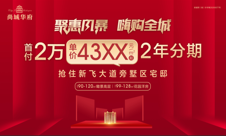 首付2万,2年分期,单价43XX元/㎡起,购房砸金蛋赢家电大奖!抢住新飞大道旁墅区宅邸!建面约90-120㎡瞰景高层,约99-128㎡花园洋房,钜惠发售!