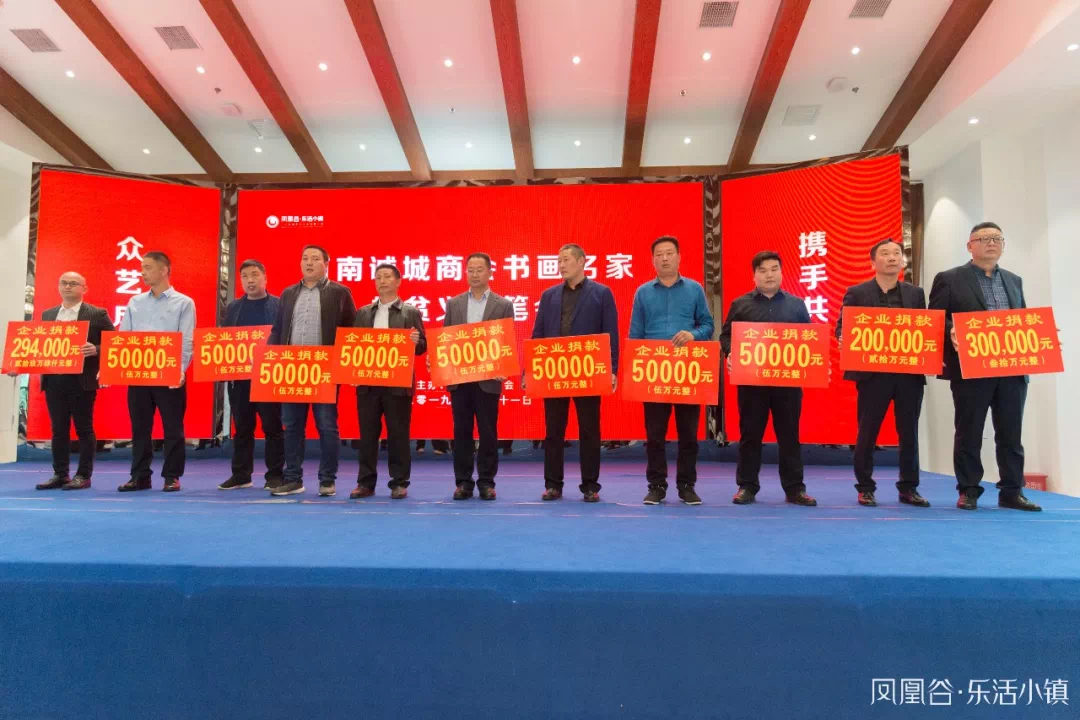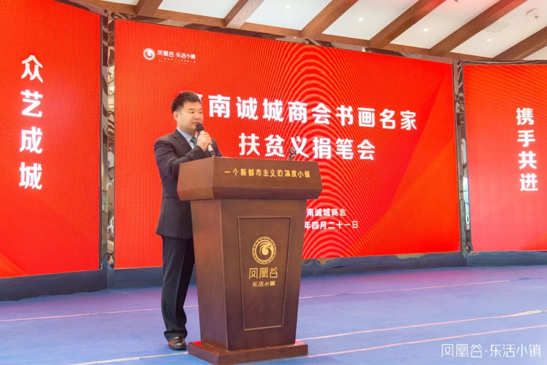 4月21日,由河南诚城商会主办的“众艺成城 携手共进”河南诚城商会书画名家扶贫义捐笔会在凤凰谷·乐活小镇举行。