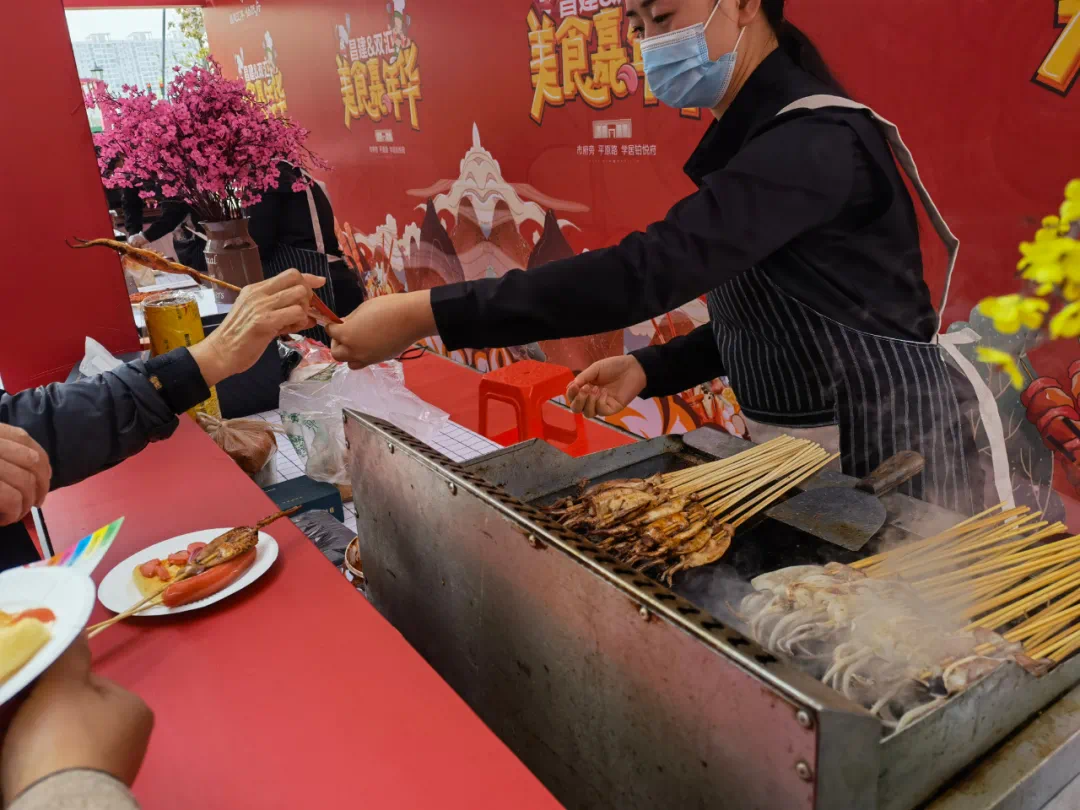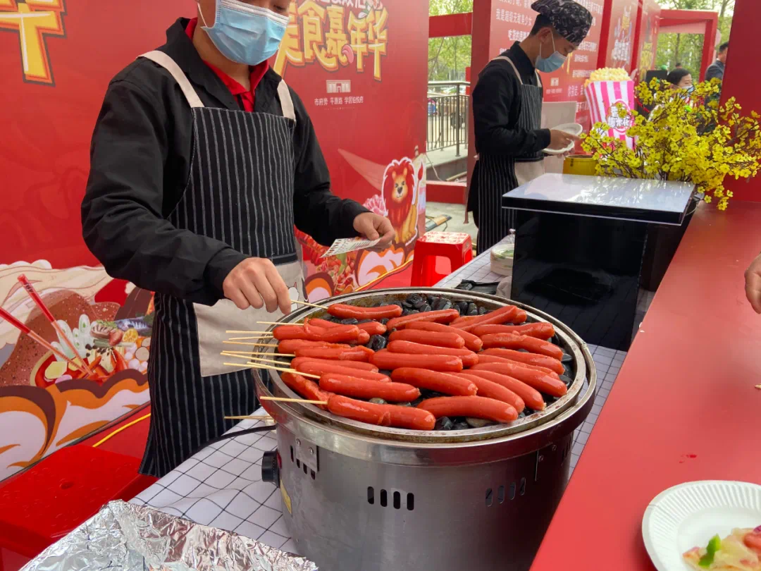 不负时光 FUN肆吃,走进美食嘉年华活动区域就被琳琅满目的美食所吸引烤肉、棉花糖、关东煮、铁板烧炸鸡排等各种美食小吃特别让你流连忘返吃了还想来