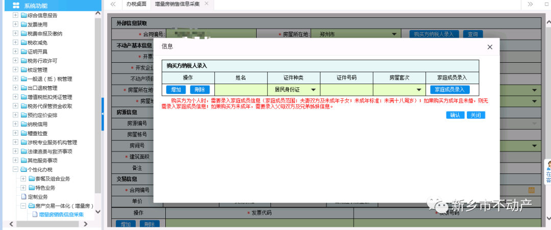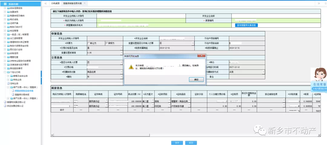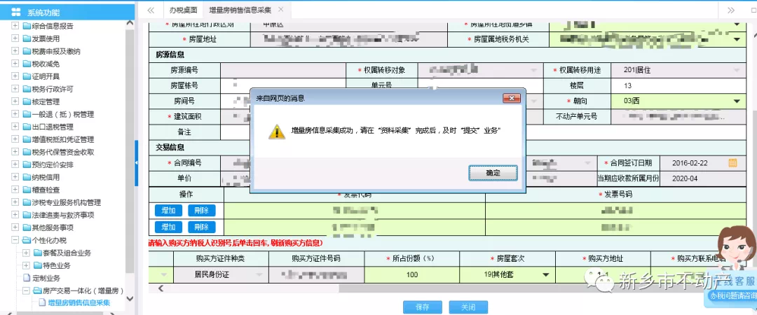 模块路径:首页-【我要办税】-【个性化办税】-【房产交易一体化(增量房)】-【增量房销售信息采集】
