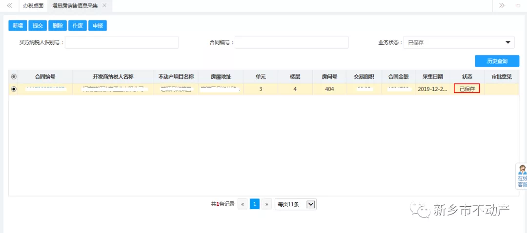 提交/关闭后,可在【增量房销售信息采集】,查看提交/保存结果,如图: