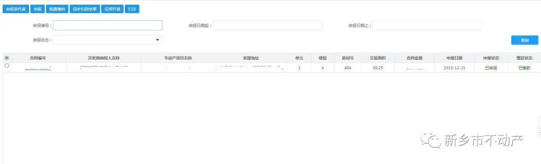 房地产开发商进行项目税收申报时,应当按照有关规定报送房屋销售合同和《增量房销售信息表》,系统采集相关报送信息后,产生房源编号,同时记录与不动产项目编号关联关系;纳税人已销售房产发生退回的,当期应收款栏目以负数形式体现。