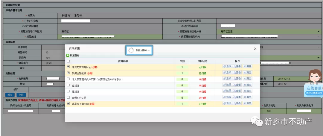 4. 保存【增量房销售信息采集表】后,点击下方【资料采集】,进入资料采集页面(部分必填),如图:
