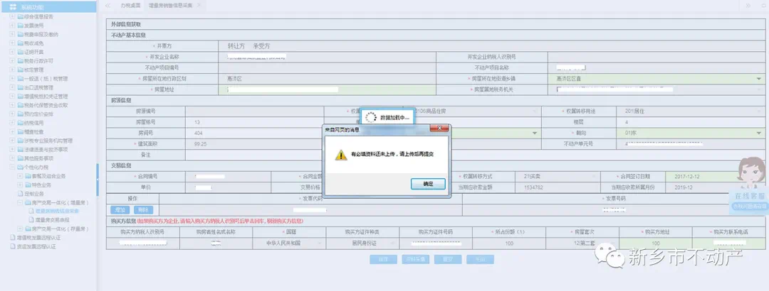 5.点击【提交】,页面跳转至【增量房交易申报】页面自动进行后续业务操作,如图: