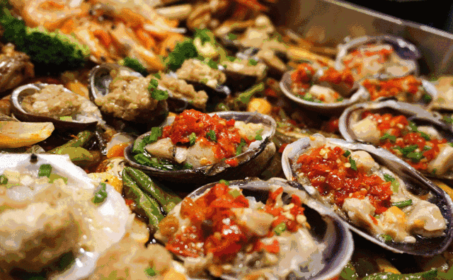 海鲜大咖,饕餮盛宴。精选海鲜大餐,应有尽有,大虾,蛤蜊,花甲·······配上浓香的蒜泥和辣椒,光是想想就让人口水直流!