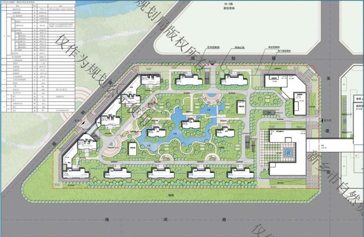 万华高科金融园一期位于新乡市海河路与关堤街交叉口西北角,规划用地面积为73627.44㎡,总建筑面积283924.89㎡,地上建筑面积184068.52㎡,地下建筑面积99856.37㎡,容积率2.50,建筑密度19.71%,绿地率35%,机动车停车位1870辆,其中地上50辆,地下1820辆,规划