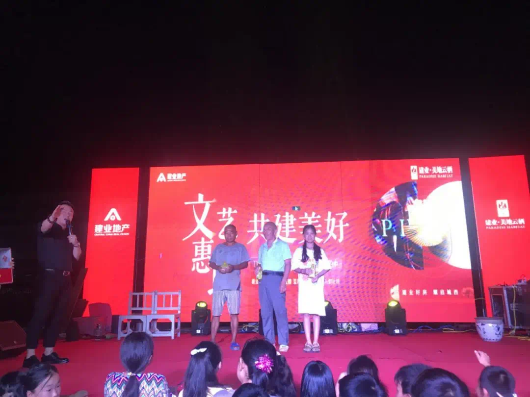 在欣赏丰富多彩的节目表演之余,乡亲们还得到了由建业·美地云栖项目提供的惊喜好礼,陆续有幸运村民上台领奖,双重收获,加倍快乐!