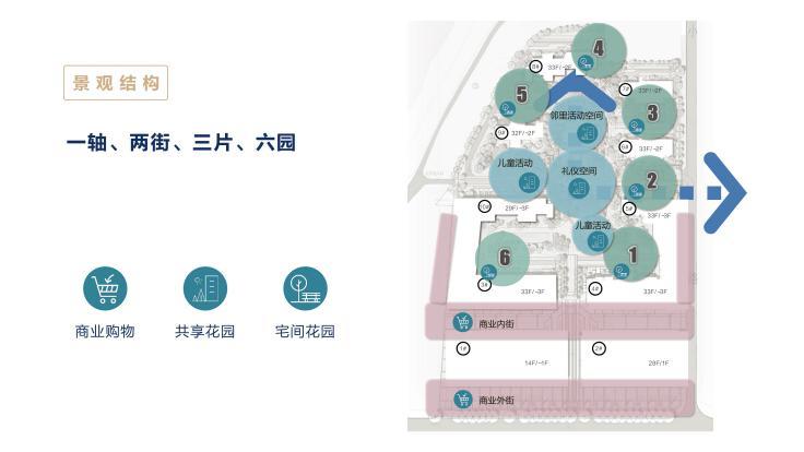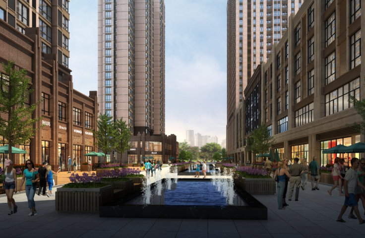 商业街区:【禹洲·嘉誉公元】沿平原路布局内外两条商业街区,运用星河广场、陈列花钵、LOGO地雕、主题铺装等元素,昭示形象、吸引人流,打造开放繁华的商业空间。