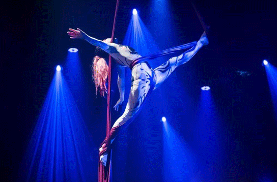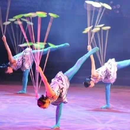 杂技演员利用彩色绸子在高空旋转飞跃,翩翩起舞 婉若游龙,一根轻柔的绸带,将你带入缥缈的世界,尽情欣赏演员空中优美的姿态和娴熟的技艺。