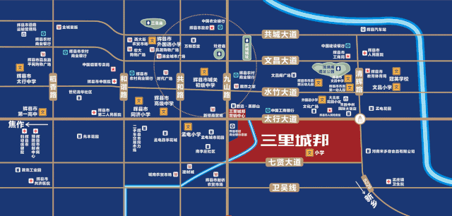 用生态洗涤城市喧嚣,用人文造就城市精品。2019年8月31日,三里城邦盛大开盘,一河两园,160万㎡智慧生态公园城,辉县匠筑,生态品质住宅倾城绽放。三里城邦,总建筑面积约160万方,规模展现实力。外围配套醇熟,向北转瞬到达辉县购物中心,金城百货,方便购物。周边教育、市场、酒店、金融等资源优渥。社区自建小学及幼儿园,教育资源丰富。