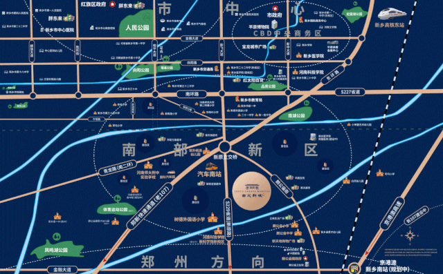南湖公园(建设中)、品质公园、300亩体育运动公园,繁华静谧皆可享,新乡医学院附属医院(在建中)呵护家人康健,新天地购物广场,以醇熟繁华犒赏人生。